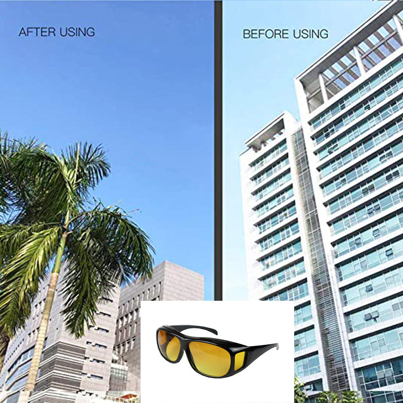 High contrast enhancement for absolutely sharp vision in difficult light .Wear over sunglasses also have the extra special feature of periphery protection which blocks light from all directions, and keeps your eyes protected no matter where you go!HD Vision Wraparounds let you see with enhanced color and clarity just like high definintion TV's and at the fraction of a price of designer glasses.Highly saturated colors reduces glare enhances contrastsSTYLISH FIT-OVER + WRAP-AROUND DESIGN YOU CAN WEAR ANYWHERE Timeless and classic Italian design, yet exuding ingenuity and innovation, for you to wear with confidence on or off the road. Available in our classic colour way - Black Frames.