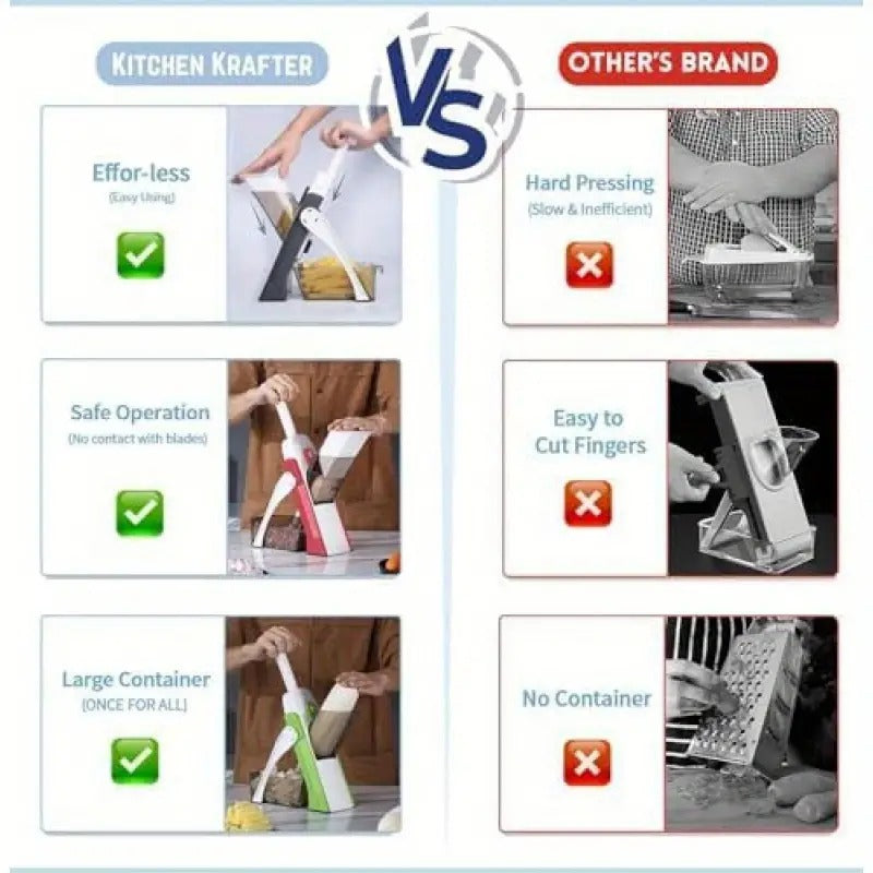 - The Safe Slice Mandolin comes with food catch container, cleaning brush, recipe guide and recipe database access.