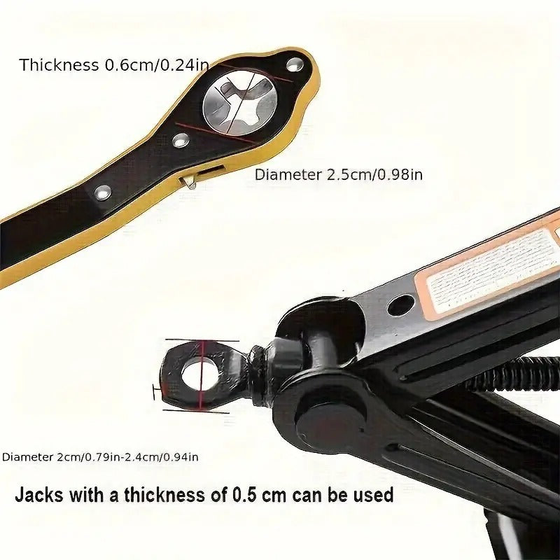 - Use Range: The thickness of the auto labor-saving jack ratchet wrench handle is 0.6cm/0.24 inch, the diameter is 2.5cm/0.98 inch, and it can be used for scissor jacks with a thickness of 0.5cm/0.17inch.